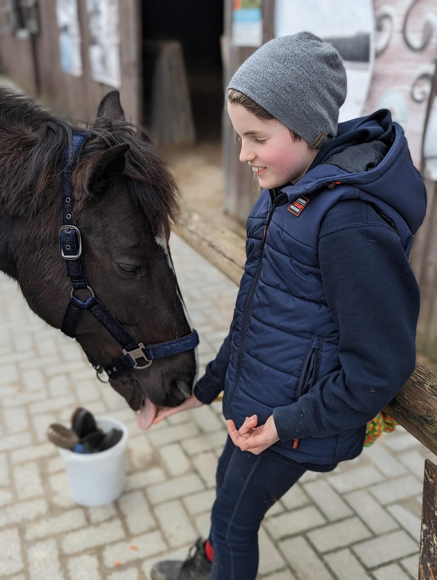 Mehr erfahrenPonyschule und Reit AGs im Schnee. Amaretto durfte sich kurz die Hufe im Stübchen aufwärmen 😍