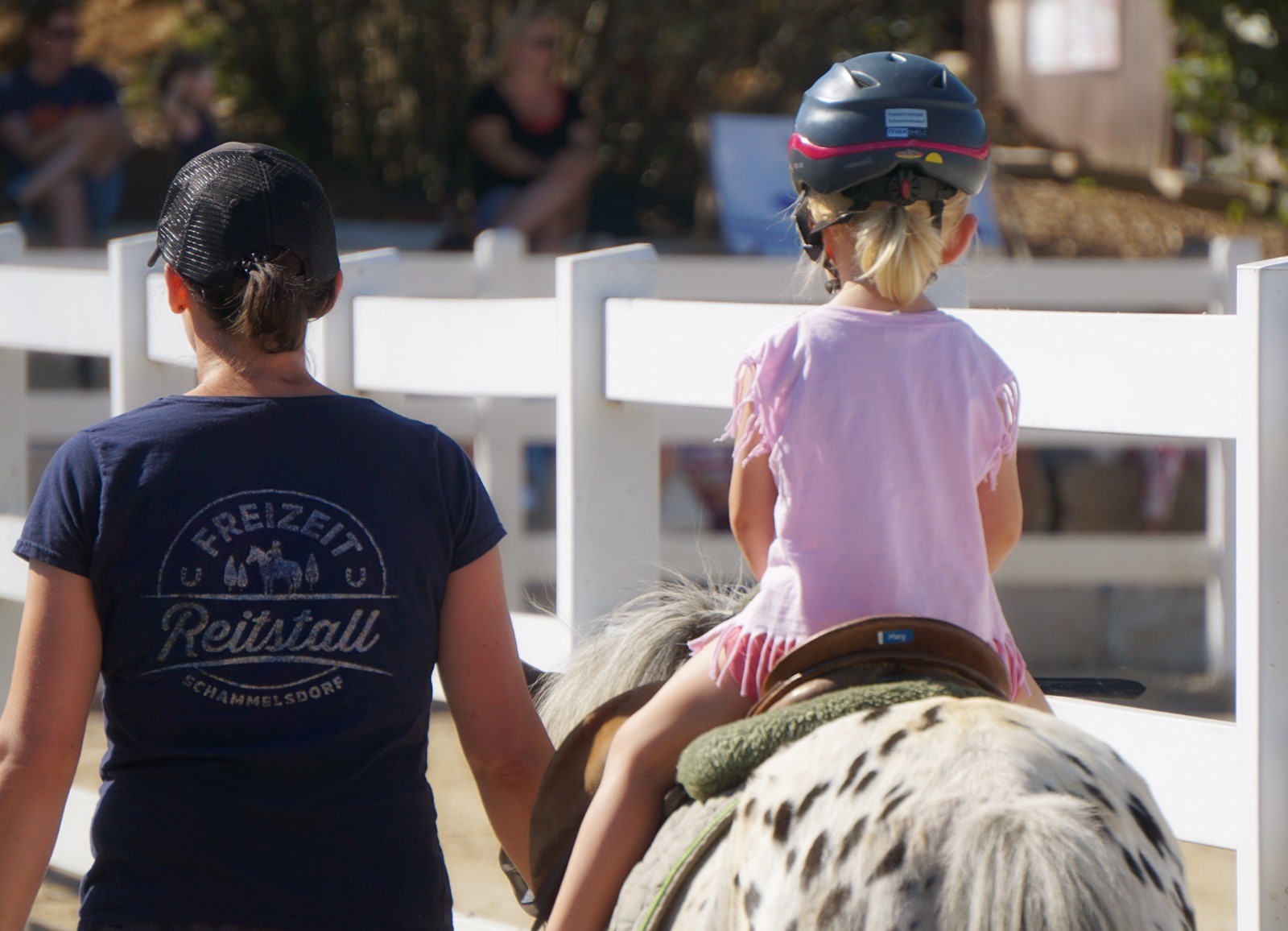 Putzen, Satteln, Reiten, Theorie und spielerische Übungen rund ums Pferd inklusive.