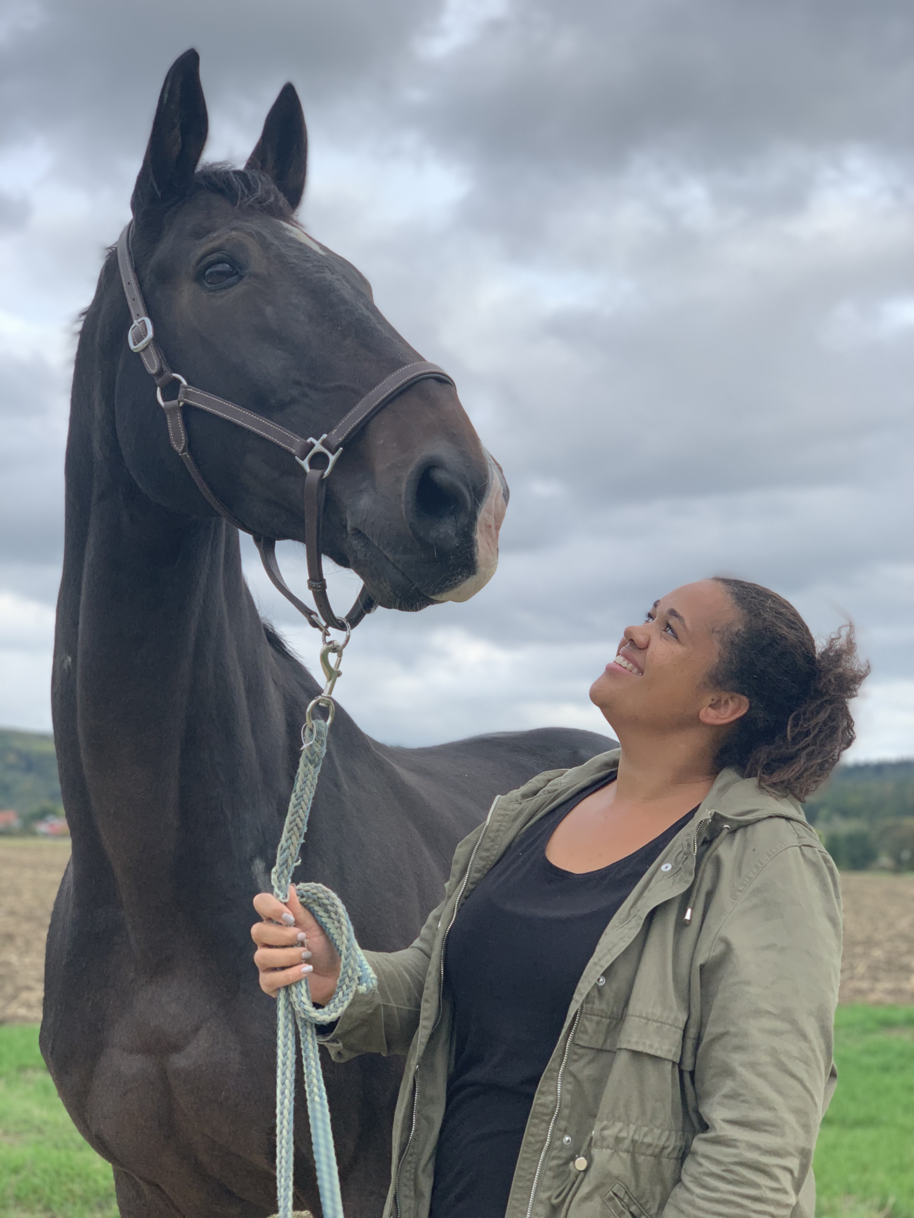 Mein Name ist Alisa und ich habe das Reiten gelernt, sobald meine Eltern es mir erlaubt hatten. Seitdem habe ich es nie länger als ein paar Monate ausgehalten, ohne auf dem Pferderücken zu sitzen – auch während eines Auslandsjahrs habe ich mir einen Stall in der Nähe gesucht. Als ich zum Studium nach Bamberg gezogen bin, war klar, dass auch hier ein Stall gefunden werden muss. So bin ich nach Schammelsdorf gekommen und seit einigen Jahren leite ich dort auch Ausritte. Vor allem die Anfängerausritte übernehme ich sehr gerne. Mit dem Pferd draußen in der Natur zu sein und zu spüren, dass Pferd und Reiter sich gegenseitig vertrauen können, ist für mich die schönste Erfahrung beim Reiten. Deswegen freue ich mich, dass ich dieses Gefühl großen und kleinen Reitern vermitteln darf, die ihre ersten Schritte außerhalb des sicher umzäunten Platzes machen. Im Oktober 2018 habe ich eine Ausbildung zur Geländerittführerin (VfD) abgeschlossen.
